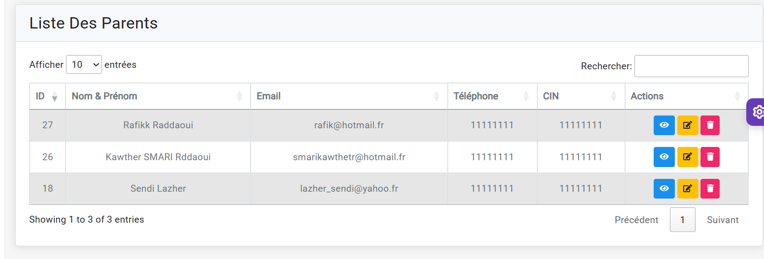 Permet de centraliser toutes les informations des parents (téléphone, email, adresse) et de faciliter la communication entre l'école et les familles pour le suivi scolaire.