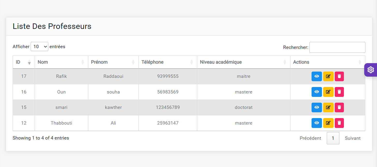 Organisation des informations des enseignants : matières enseignées, horaires, disponibilités, et communication avec la direction.